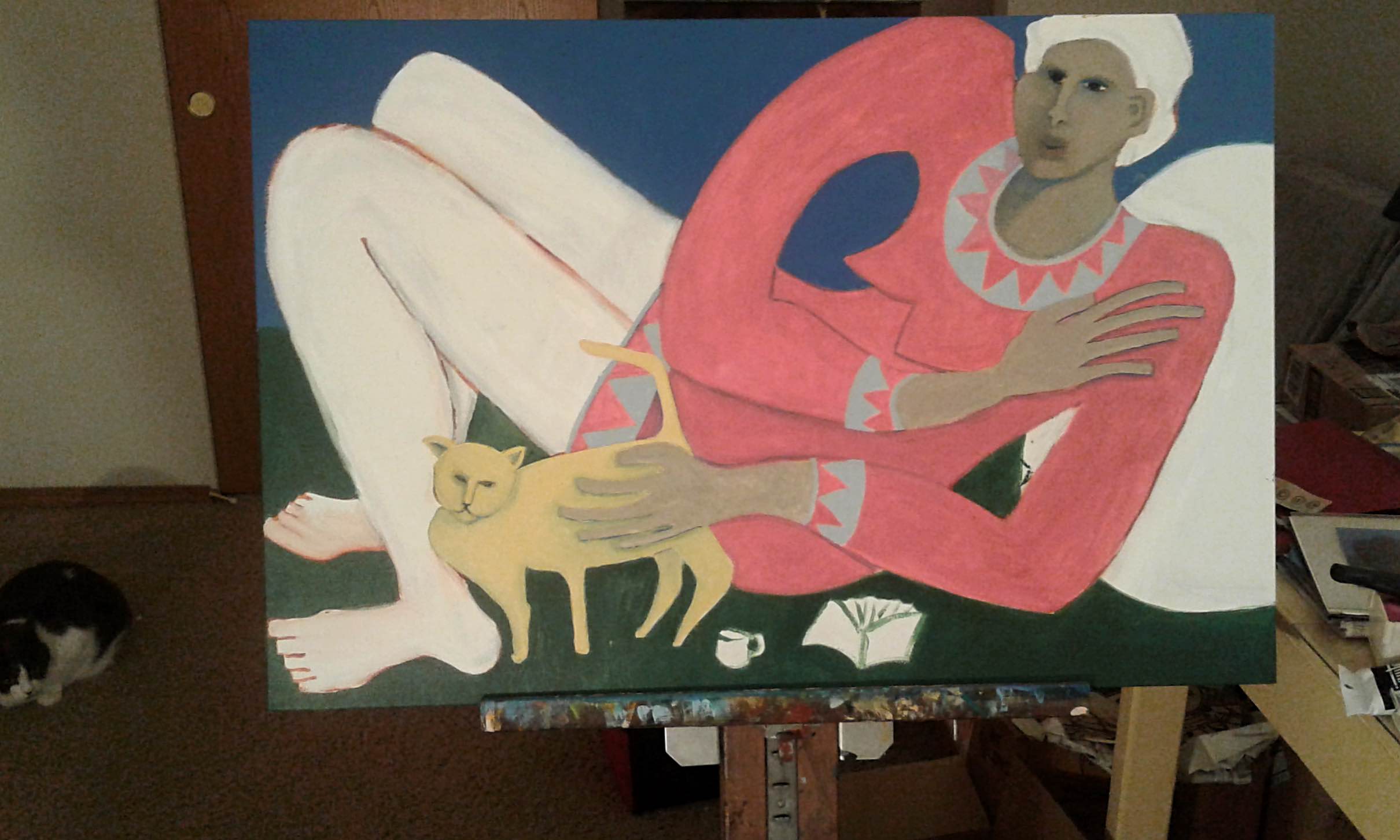 Still have to work on shadow for the hand, cat and face–but these will be minor adjustments. Am planning to get back at it later today.